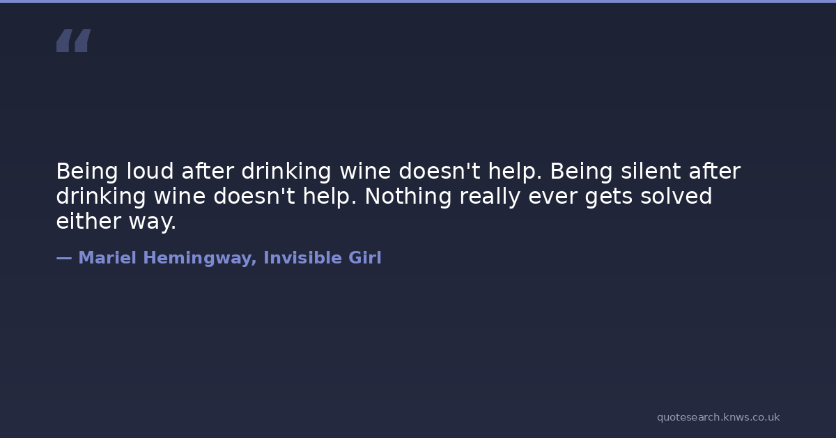 Being loud after drinking wine doesn't help. Being silent after drinking wine doesn't help. Nothing really ever gets solved either way.