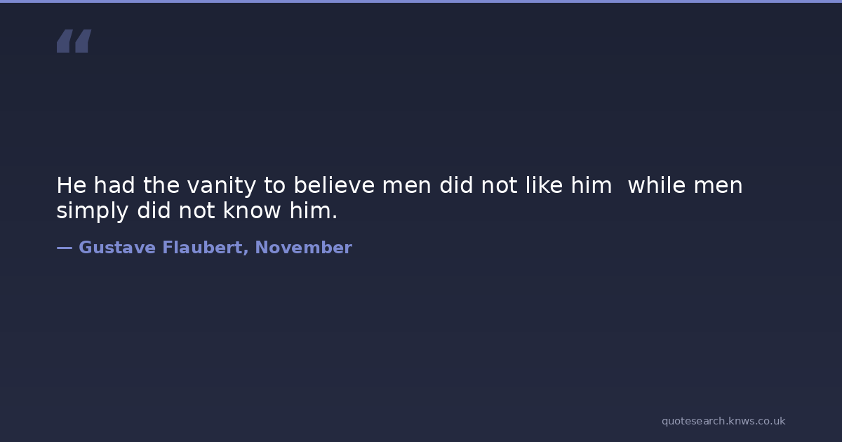 He had the vanity to believe men did not like him while men simply did not know him.