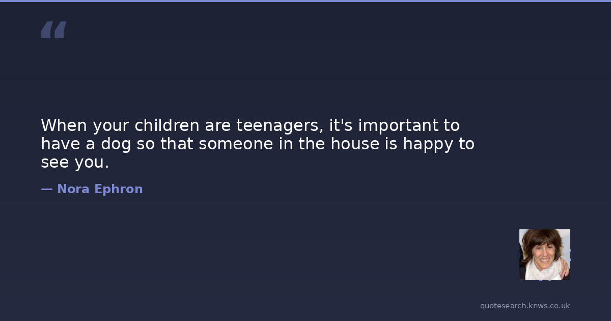 When your children are teenagers, it's important to have a dog so that someone in the house is happy to see you.