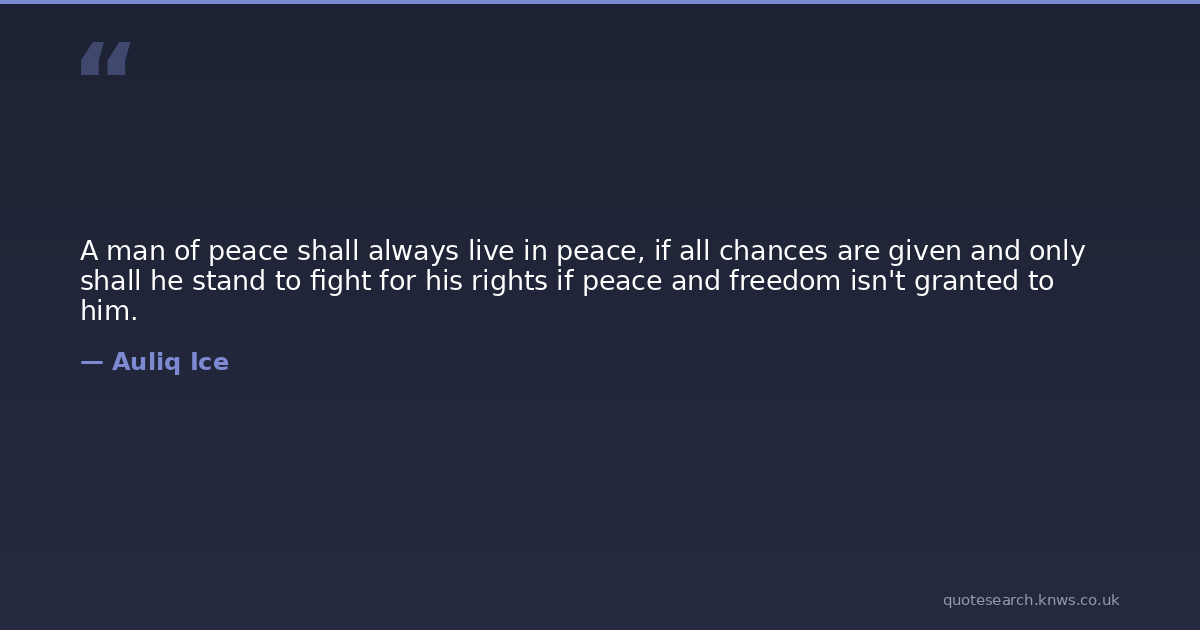 A man of peace shall always live in peace, if all chances are given and only shall he stand to fight for his rights if peace and freedom isn't granted to him.