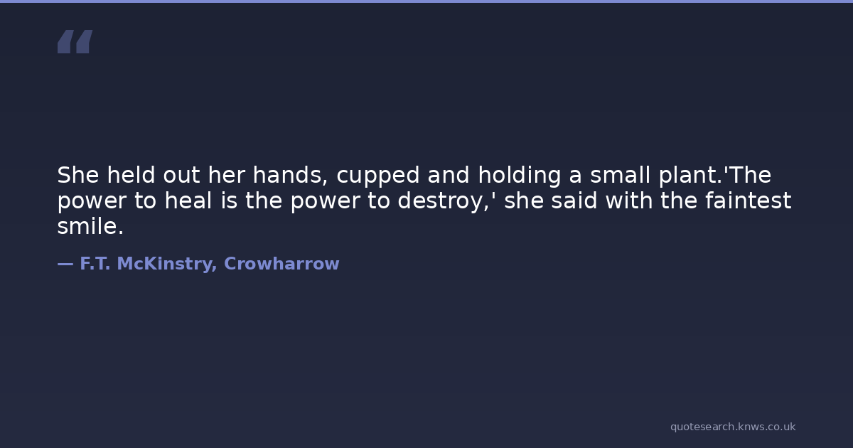 She held out her hands, cupped and holding a small plant.'The power to heal is the power to destroy,' she said with the faintest smile.