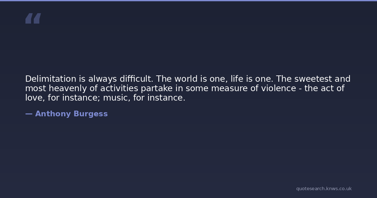 Delimitation is always difficult. The world is one, life is one. The sweetest and most heavenly of activities partake in some measure of violence - the act of love, for instance; music, for instance.