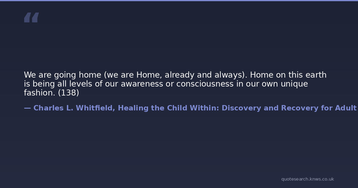 We are going home (we are Home, already and always). Home on this earth is being all levels of our awareness or consciousness in our own unique fashion. (138)