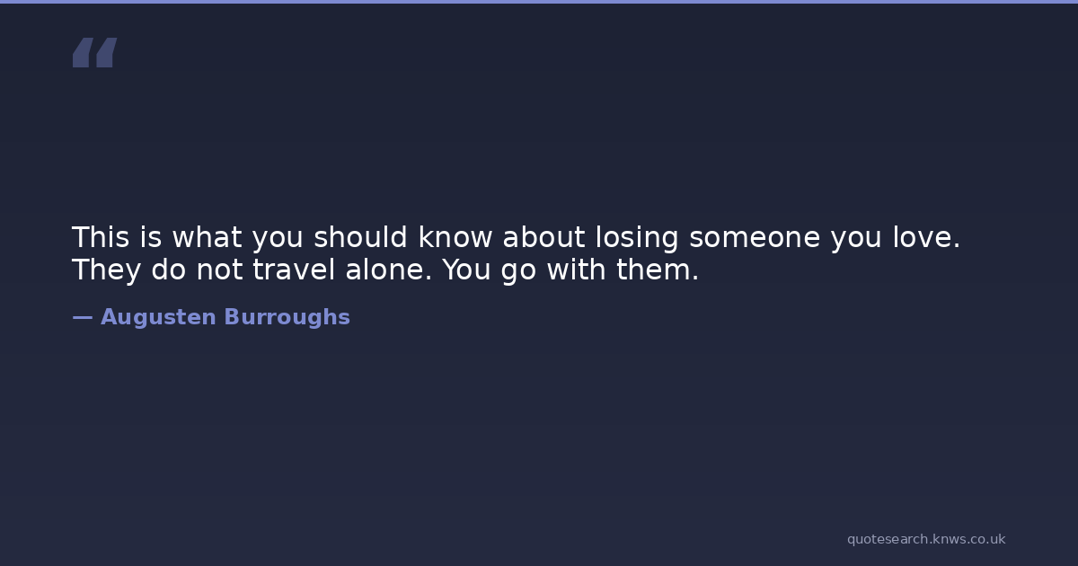 This is what you should know about losing someone you love. They do not travel alone. You go with them.