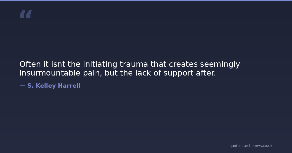 Often it isnt the initiating trauma that creates seemingly insurmountable pain, but the lack of support after.