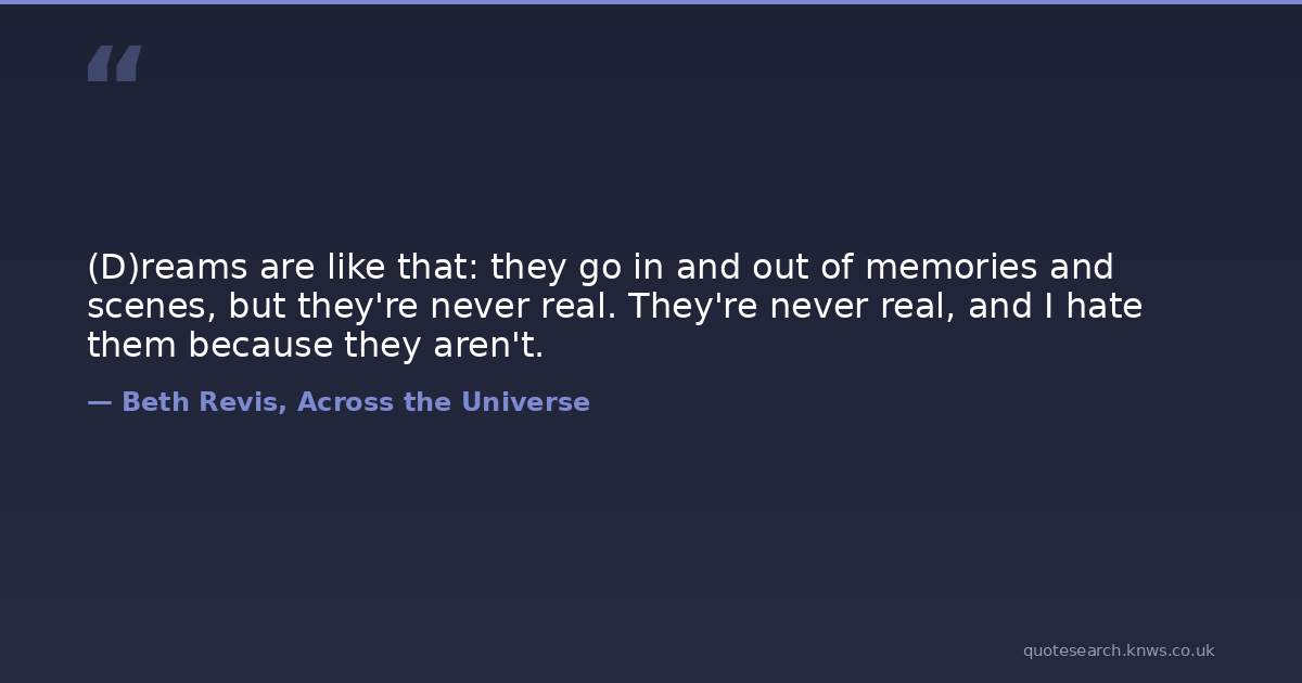 (D)reams are like that: they go in and out of memories and scenes, but they're never real. They're never real, and I hate them because they aren't.