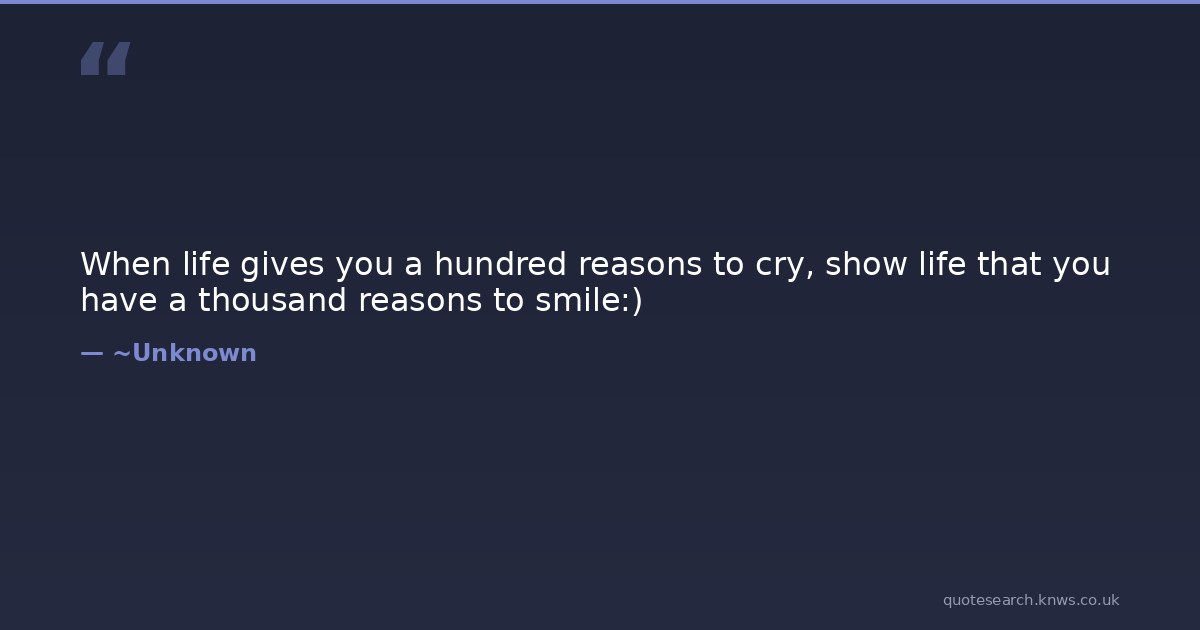 When life gives you a hundred reasons to cry, show life that you have a thousand reasons to smile:) smile Download Image Share on X Share on Facebook Copy Link