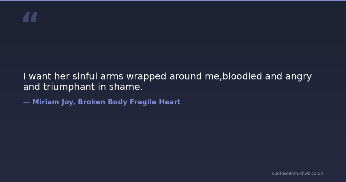 I want her sinful arms wrapped around me,bloodied and angry and triumphant in shame.