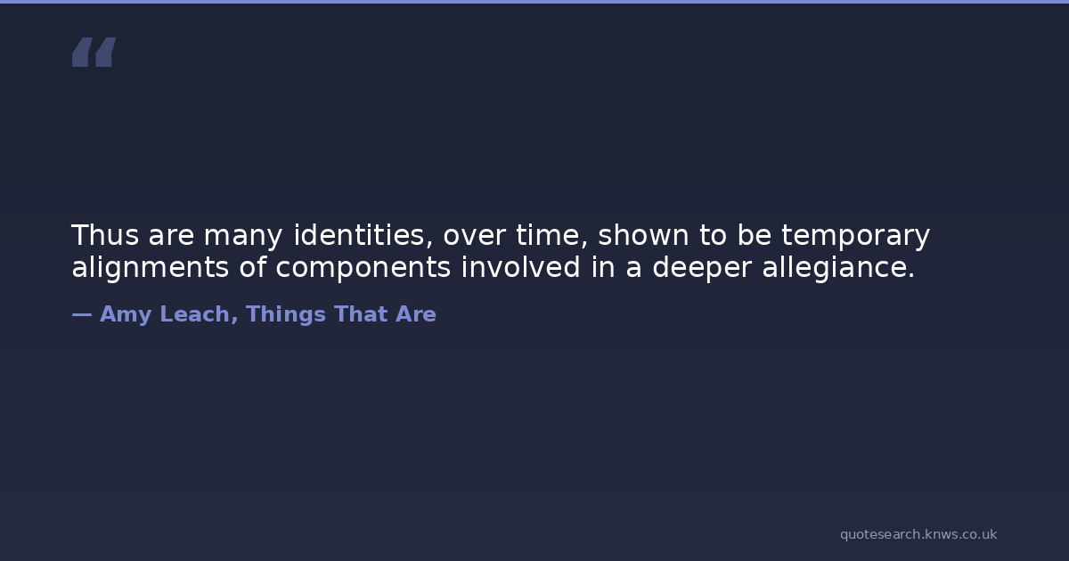 Thus are many identities, over time, shown to be temporary alignments of components involved in a deeper allegiance.
