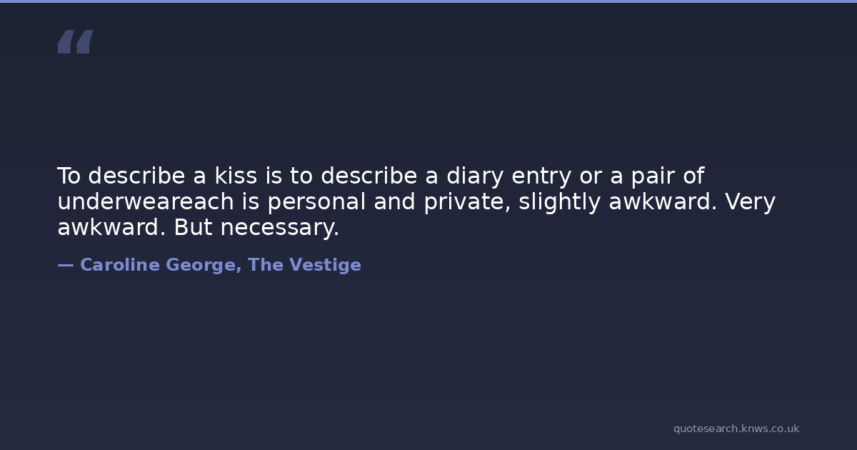 To describe a kiss is to describe a diary entry or a pair of underweareach is personal and private, slightly awkward. Very awkward. But necessary.