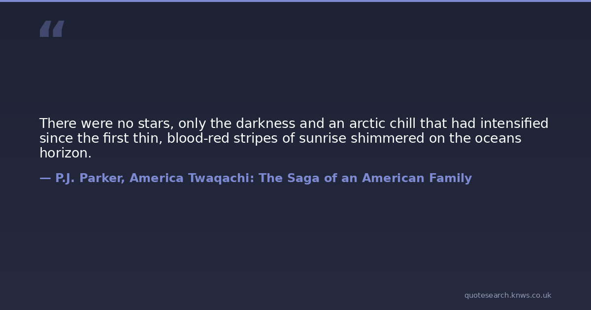 There were no stars, only the darkness and an arctic chill that had intensified since the first thin, blood-red stripes of sunrise shimmered on the oceans horizon.