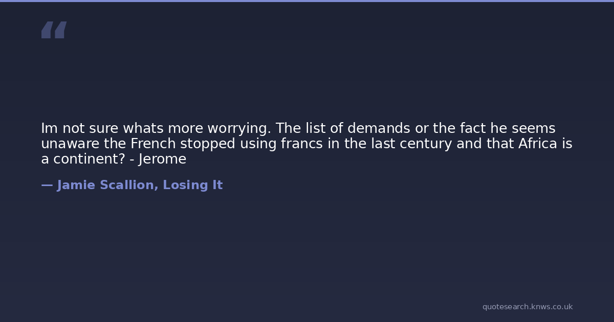 Im not sure whats more worrying. The list of demands or the fact he seems unaware the French stopped using francs in the last century and that Africa is a continent? - Jerome