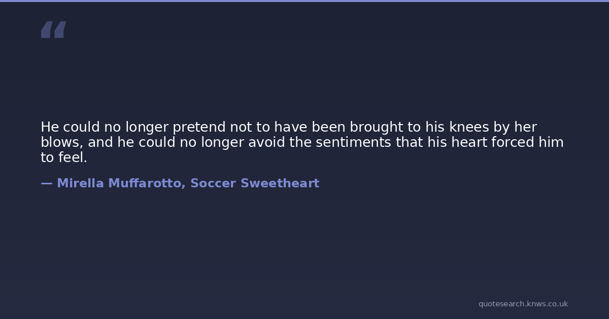 He could no longer pretend not to have been brought to his knees by her blows, and he could no longer avoid the sentiments that his heart forced him to feel.
