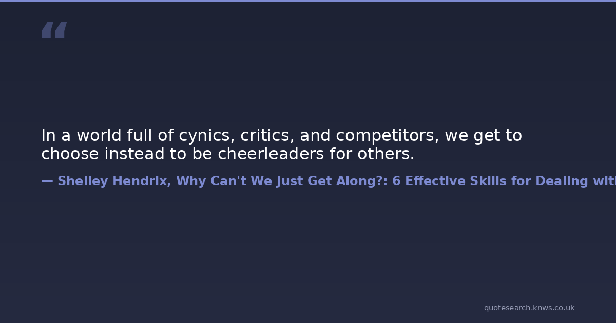 In a world full of cynics, critics, and competitors, we get to choose instead to be cheerleaders for others.