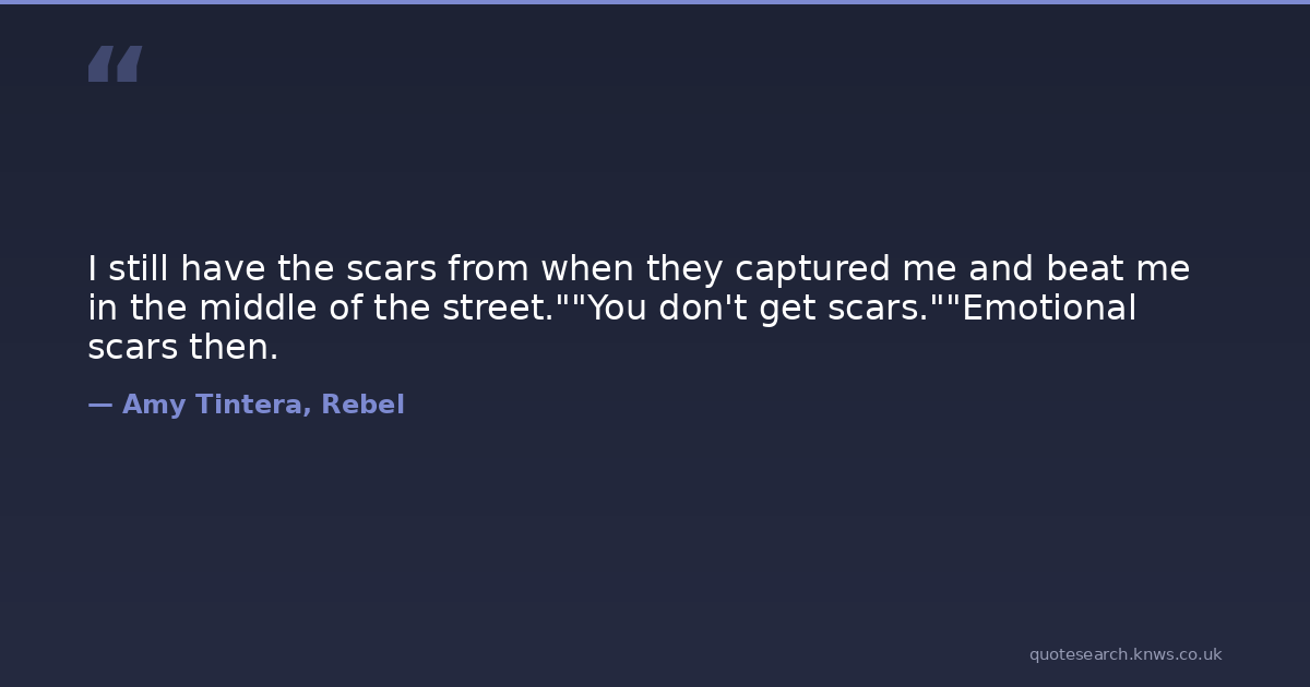 I still have the scars from when they captured me and beat me in the middle of the street.""You don't get scars.""Emotional scars then.