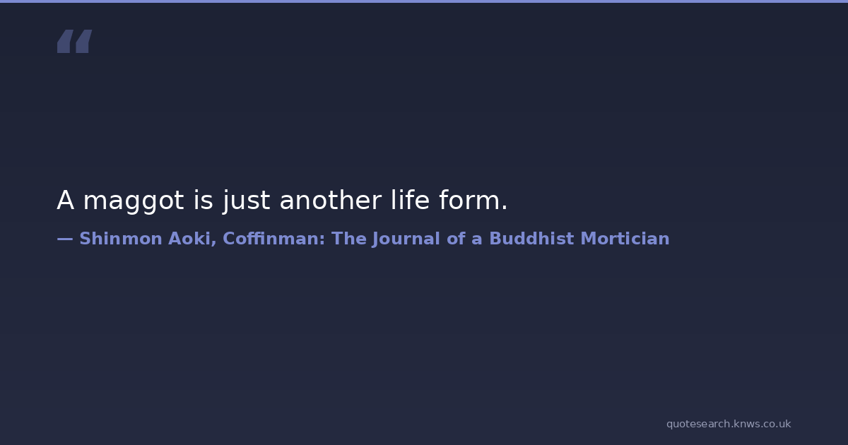 A maggot is just another life form. buddhism death life life-and-death maggots Download Image Share on X Share on Facebook Copy Link