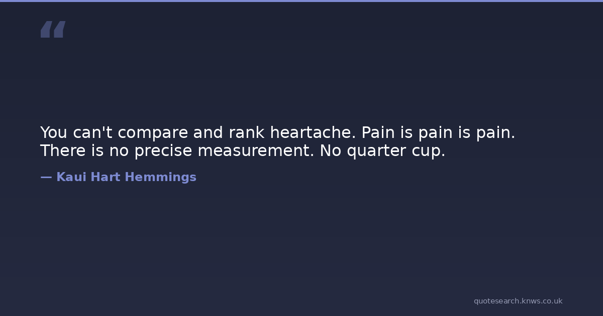You can't compare and rank heartache. Pain is pain is pain. There is no precise measurement. No quarter cup.