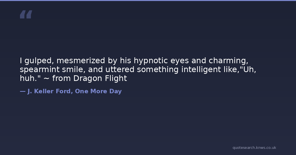 I gulped, mesmerized by his hypnotic eyes and charming, spearmint smile, and uttered something intelligent like,"Uh, huh." ~ from Dragon Flight