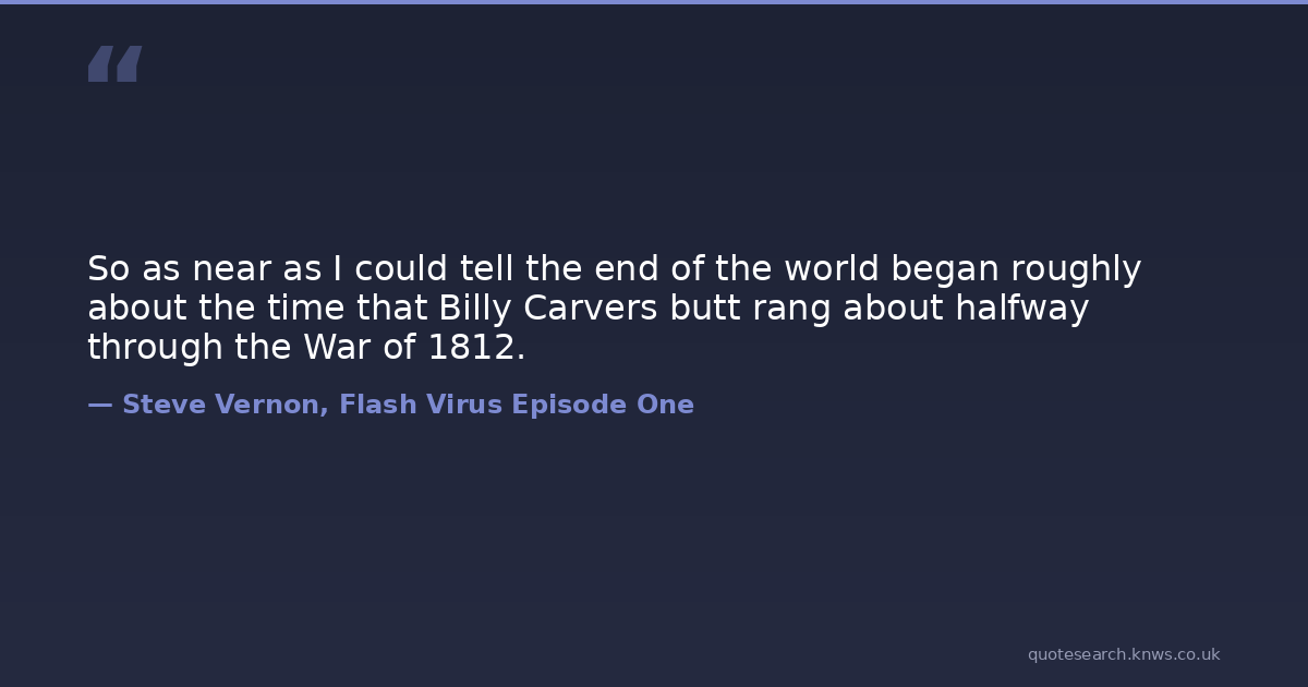 So as near as I could tell the end of the world began roughly about the time that Billy Carvers butt rang about halfway through the War of 1812.