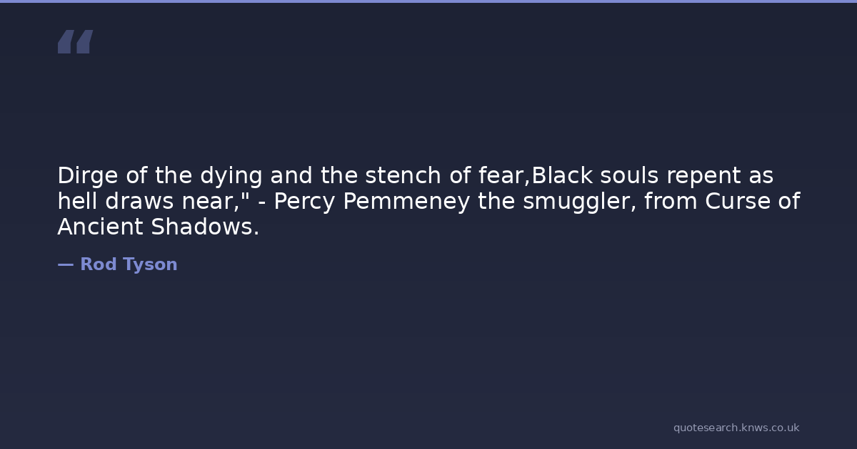 Dirge of the dying and the stench of fear,Black souls repent as hell draws near," - Percy Pemmeney the smuggler, from Curse of Ancient Shadows.