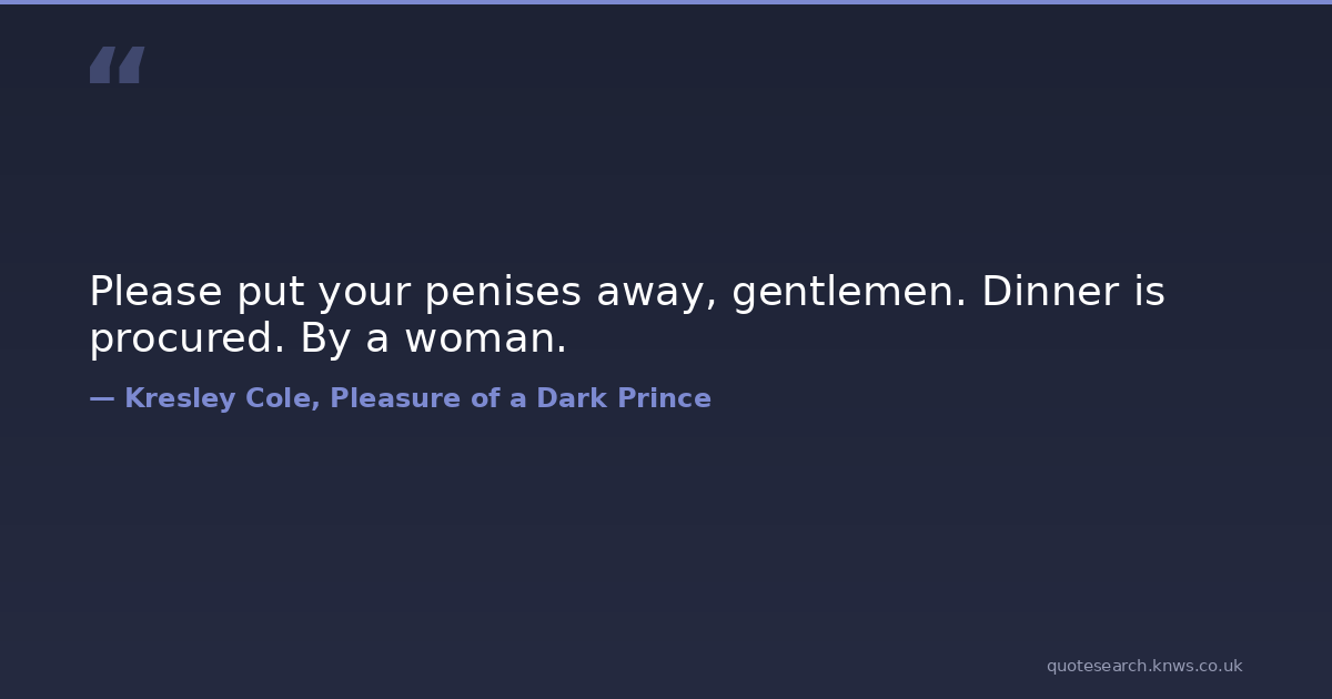 Please put your penises away, gentlemen. Dinner is procured. By a woman. humorous immortals-after-dark Download Image Share on X Share on Facebook Copy Link