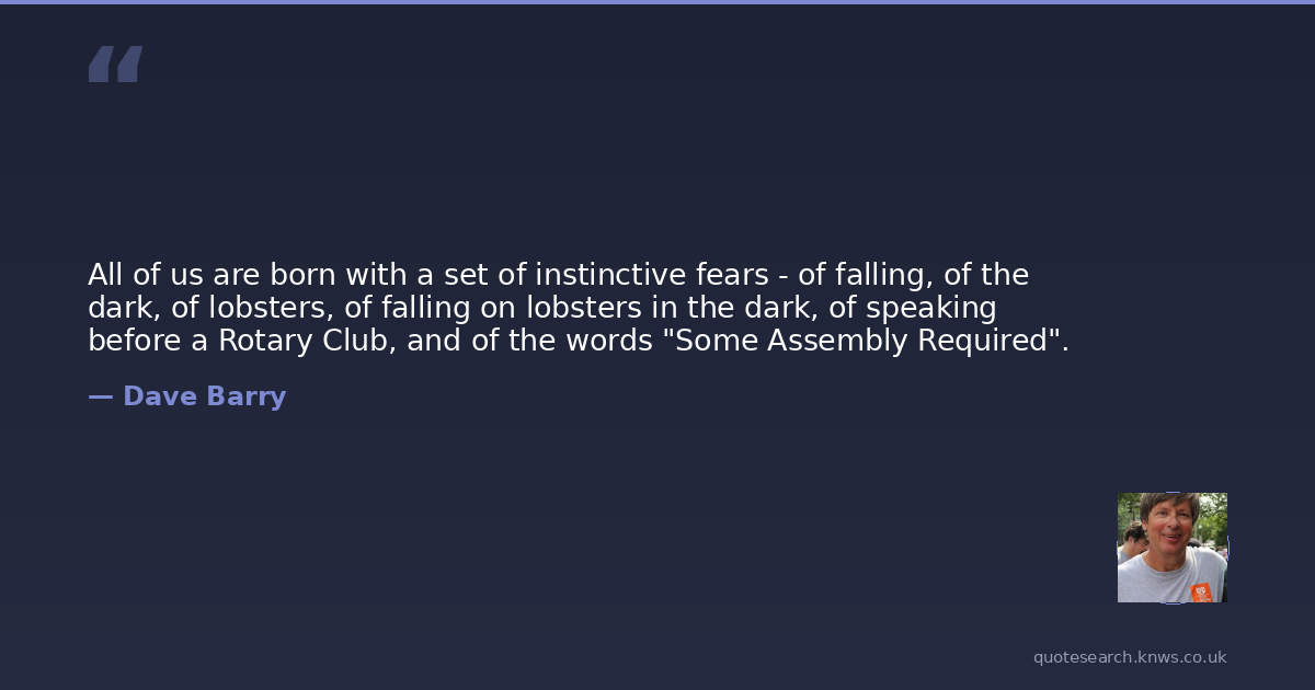 All of us are born with a set of instinctive fears - of falling, of the dark, of lobsters, of falling on lobsters in the dark, of speaking before a Rotary Club, and of the words "Some Assembly Required".