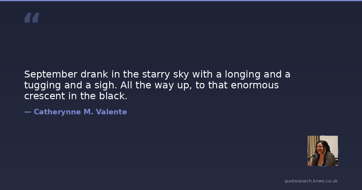 September drank in the starry sky with a longing and a tugging and a sigh. All the way up, to that enormous crescent in the black.