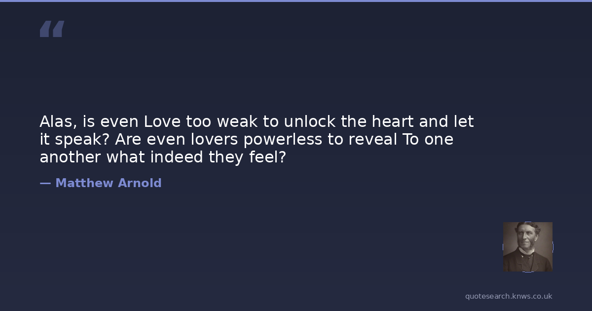 Alas, is even Love too weak to unlock the heart and let it speak? Are even lovers powerless to reveal To one another what indeed they feel?