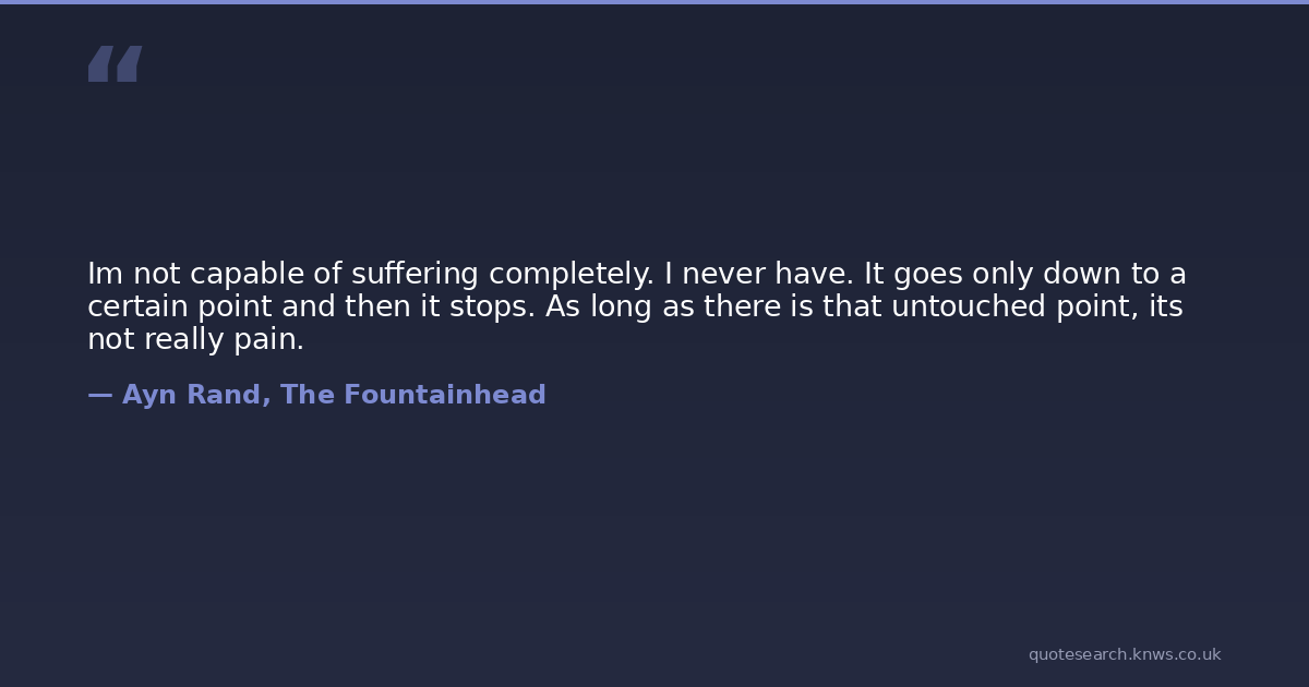 Im not capable of suffering completely. I never have. It goes only down to a certain point and then it stops. As long as there is that untouched point, its not really pain.