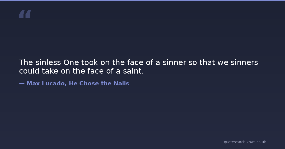 The sinless One took on the face of a sinner so that we sinners could take on the face of a saint. christianity spiritual-growth Download Image Share on X Share on Facebook Copy Link