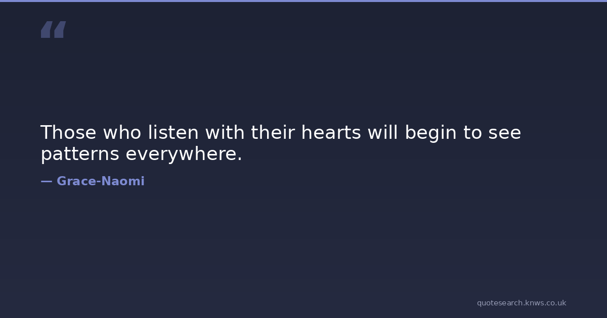 Those who listen with their hearts will begin to see patterns everywhere. inspirational-love spiritual-growth truth Download Image Share on X Share on Facebook Copy Link