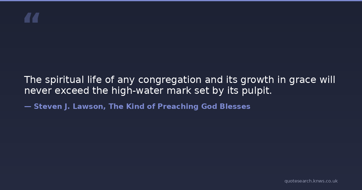 The spiritual life of any congregation and its growth in grace will never exceed the high-water mark set by its pulpit. preaching spiritual-growth Download Image Share on X Share on Facebook Copy Link