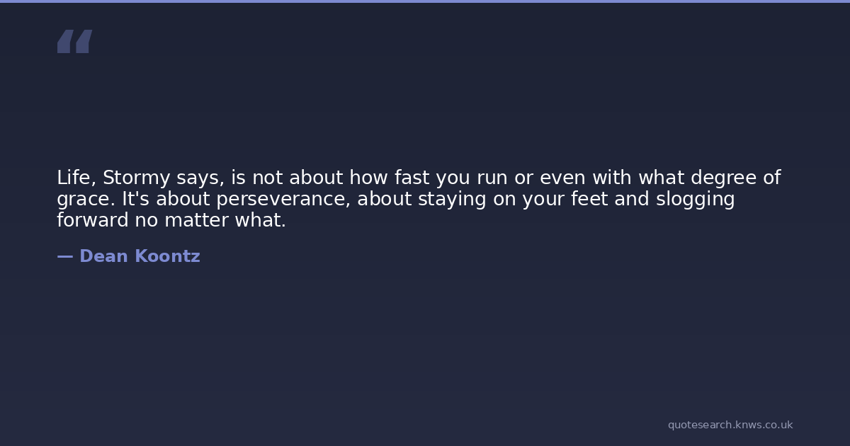 Life, Stormy says, is not about how fast you run or even with what degree of grace. It's about perseverance, about staying on your feet and slogging forward no matter what.