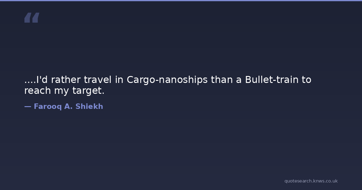 ....I'd rather travel in Cargo-nanoships than a Bullet-train to reach my target.