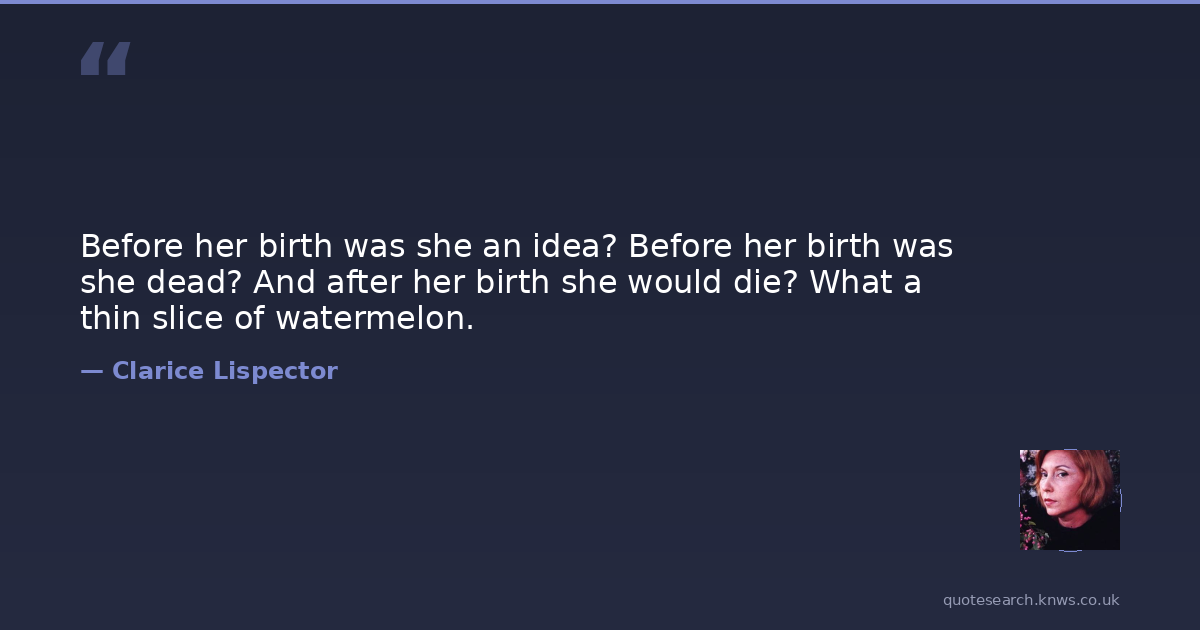 Before her birth was she an idea? Before her birth was she dead? And after her birth she would die? What a thin slice of watermelon.