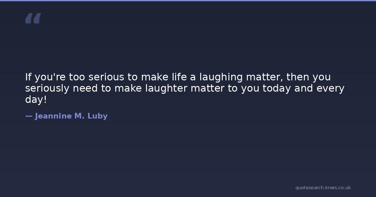 If you're too serious to make life a laughing matter, then you seriously need to make laughter matter to you today and every day!