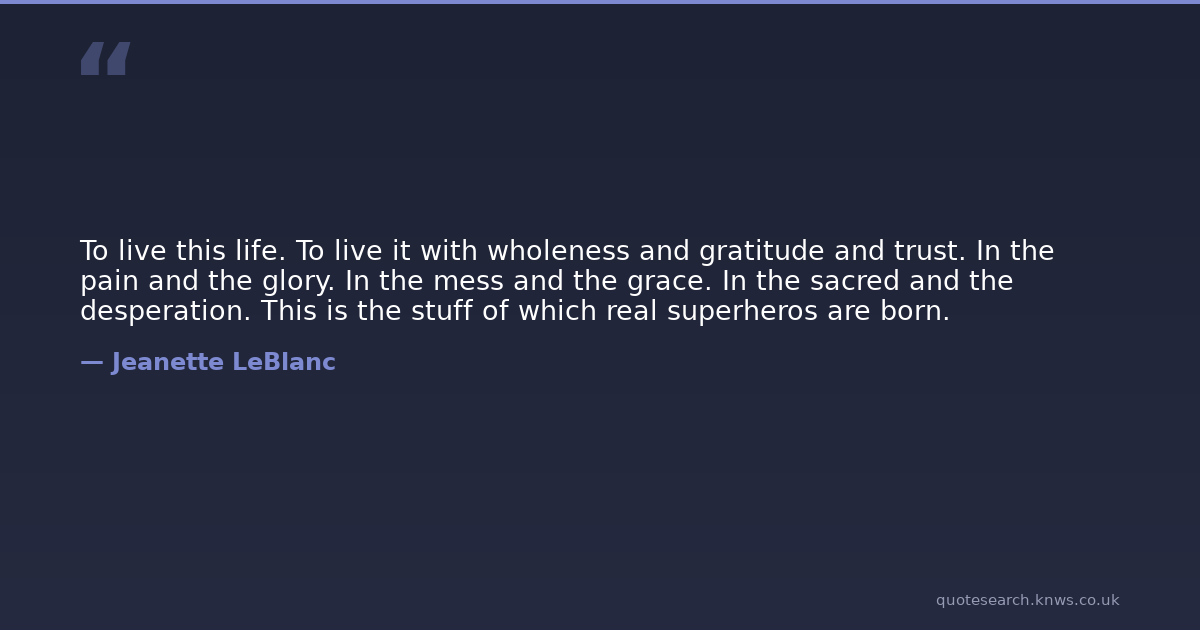 To live this life. To live it with wholeness and gratitude and trust. In the pain and the glory. In the mess and the grace. In the sacred and the desperation. This is the stuff of which real superheros are born.