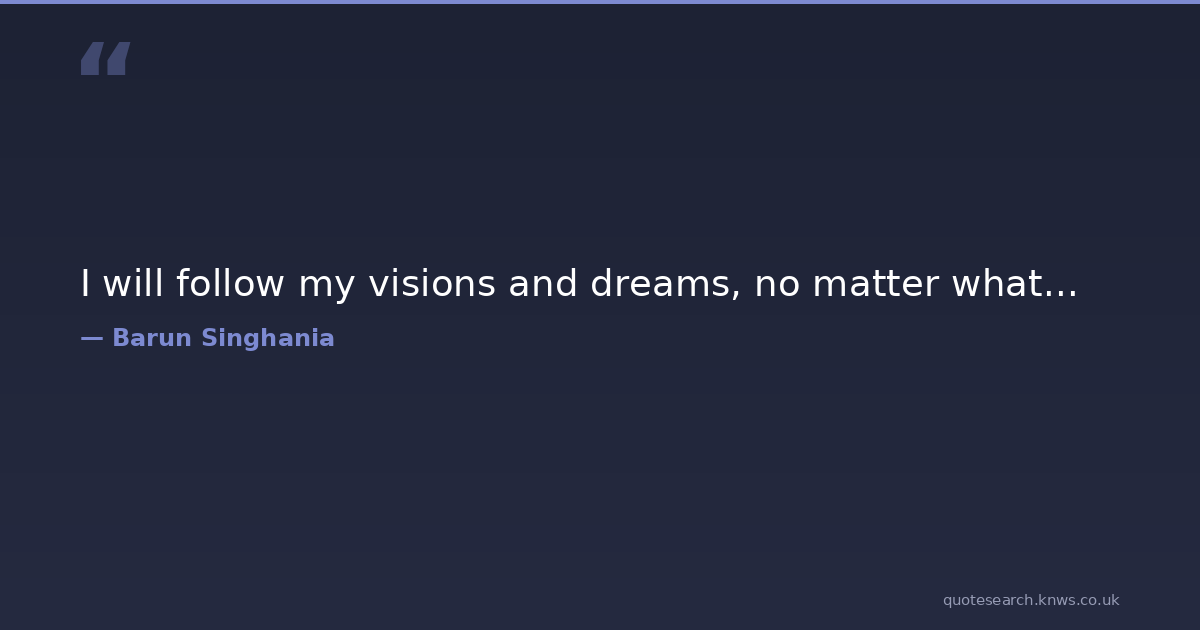 I will follow my visions and dreams, no matter what... motivation Download Image Share on X Share on Facebook Copy Link