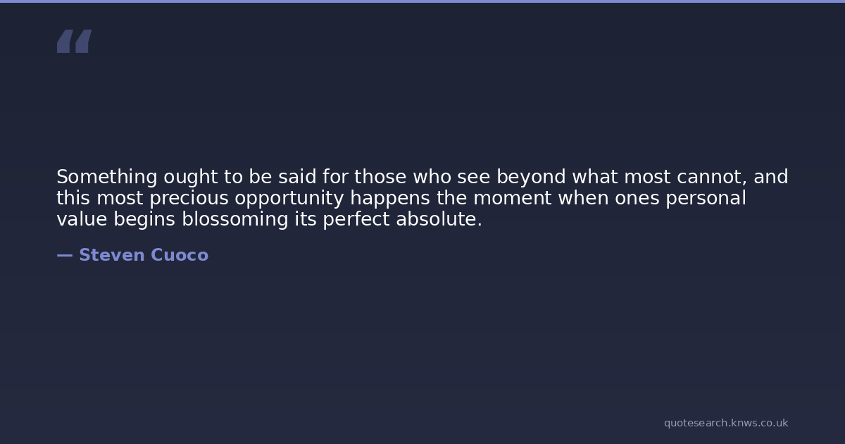 Something ought to be said for those who see beyond what most cannot, and this most precious opportunity happens the moment when ones personal value begins blossoming its perfect absolute.