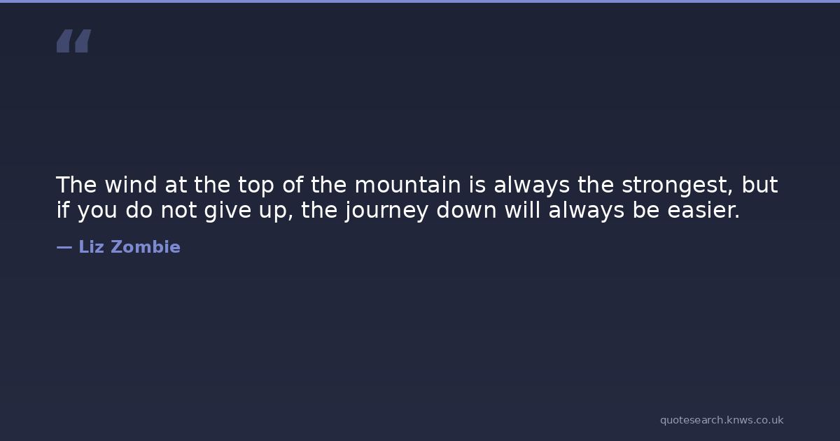 The wind at the top of the mountain is always the strongest, but if you do not give up, the journey down will always be easier.