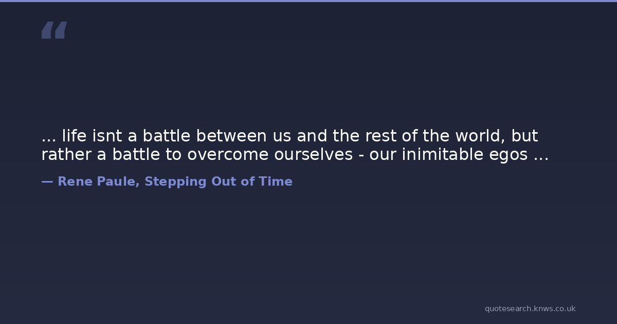 ... life isnt a battle between us and the rest of the world, but rather a battle to overcome ourselves - our inimitable egos ...