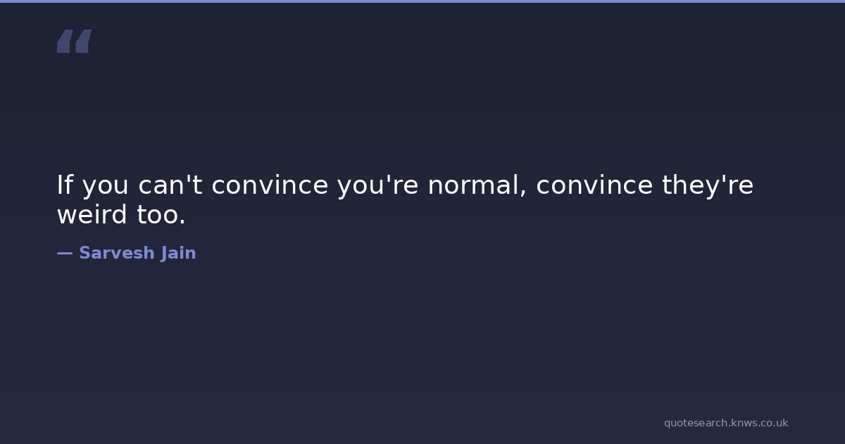 If you can't convince you're normal, convince they're weird too. inspirational-attitude Download Image Share on X Share on Facebook Copy Link