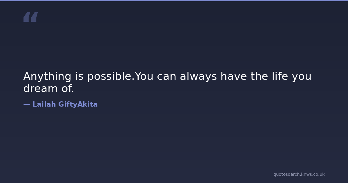 Anything is possible.You can always have the life you dream of. anything anything-can-be anything-is-possible dream-inspirational dreams-quotes inspirational-attitude inspirational-quote possibilities possibility possibility-quotes possible Download Image Share on X Share on Facebook Copy Link
