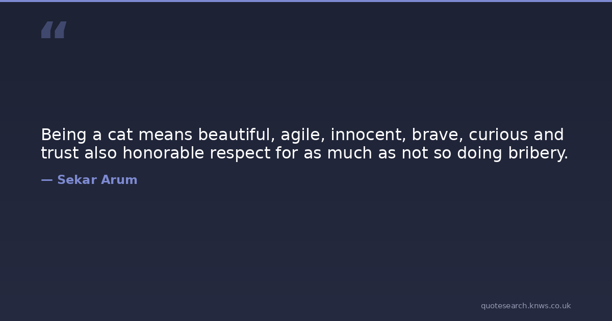 Being a cat means beautiful, agile, innocent, brave, curious and trust also honorable respect for as much as not so doing bribery.