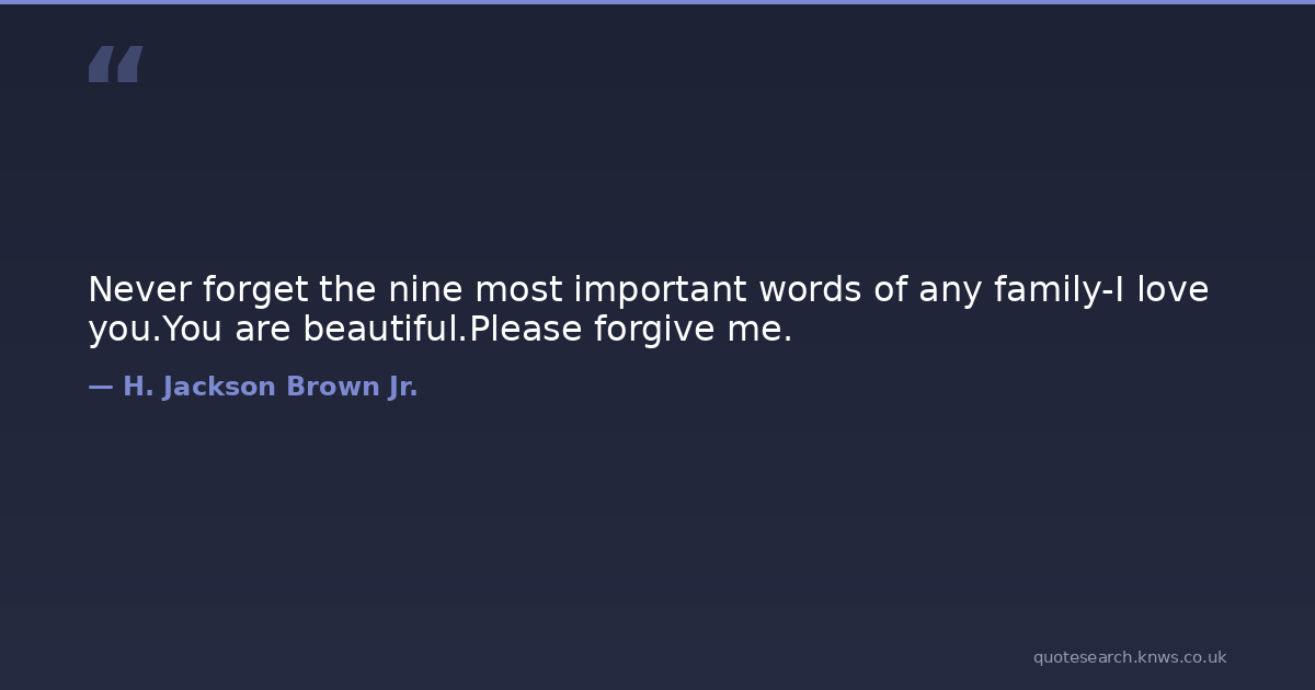 Never forget the nine most important words of any family-I love you.You are beautiful.Please forgive me.