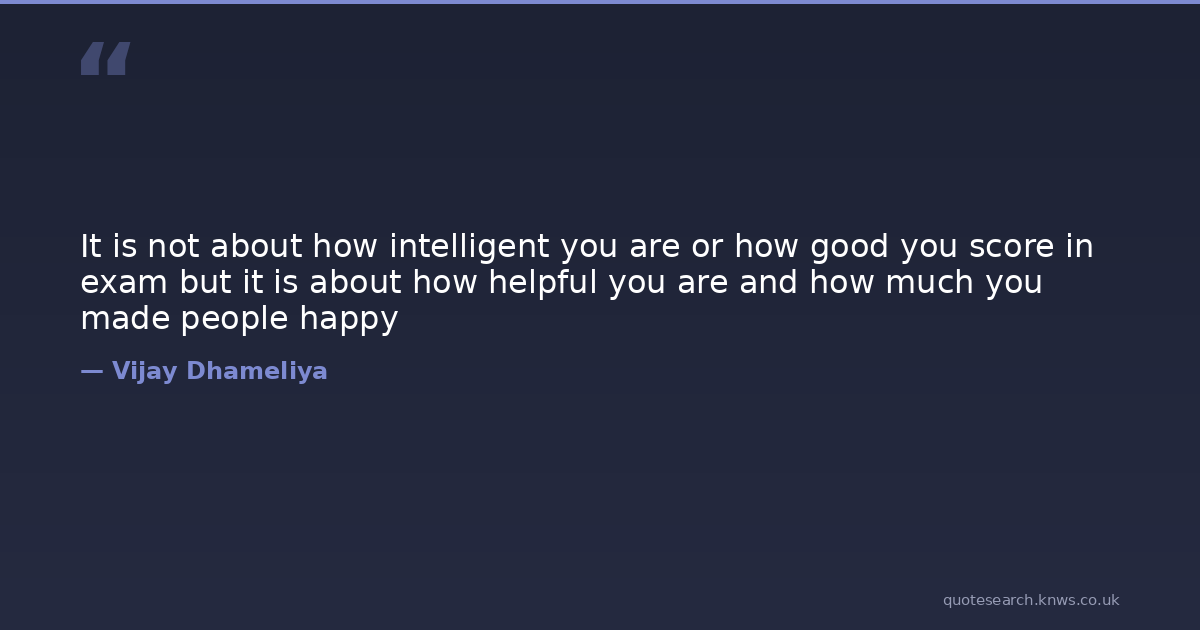 It is not about how intelligent you are or how good you score in exam but it is about how helpful you are and how much you made people happy