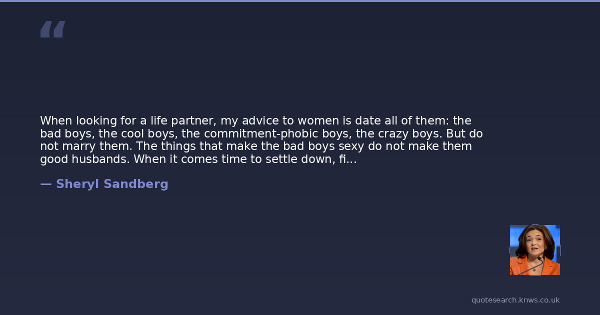 When looking for a life partner, my advice to women is date all of them: the bad boys, the cool boys, the commitment-phobic boys, the crazy boys. But do not marry them. The things that make the bad boys sexy do not make them good husbands. When it comes time to settle down, find someone who wants an equal partner. Someone who thinks women should be smart, opinionated and ambitious. Someone who values fairness and expects or, even better, wants to do his share in the home. These men exist and, trust me, over time, nothing is sexier.