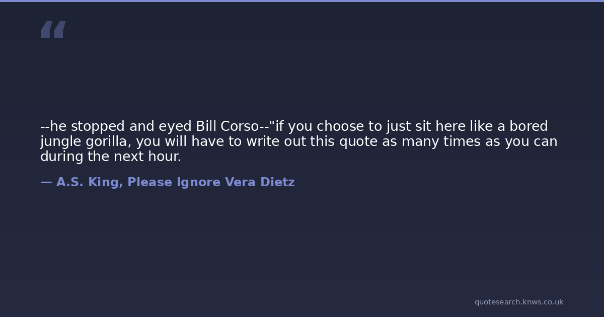 --he stopped and eyed Bill Corso--"if you choose to just sit here like a bored jungle gorilla, you will have to write out this quote as many times as you can during the next hour.