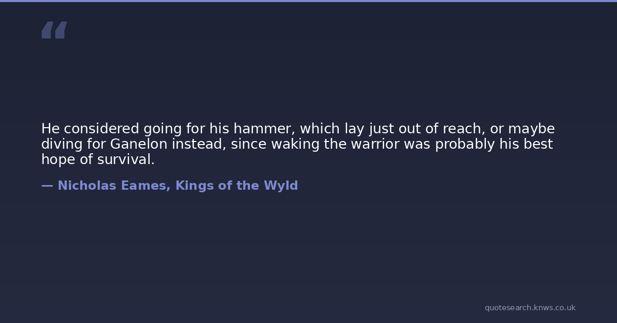 He considered going for his hammer, which lay just out of reach, or maybe diving for Ganelon instead, since waking the warrior was probably his best hope of survival.