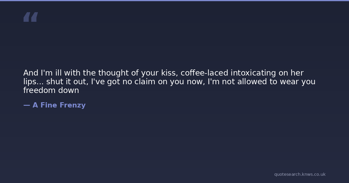 And I'm ill with the thought of your kiss, coffee-laced intoxicating on her lips... shut it out, I've got no claim on you now, I'm not allowed to wear you freedom down